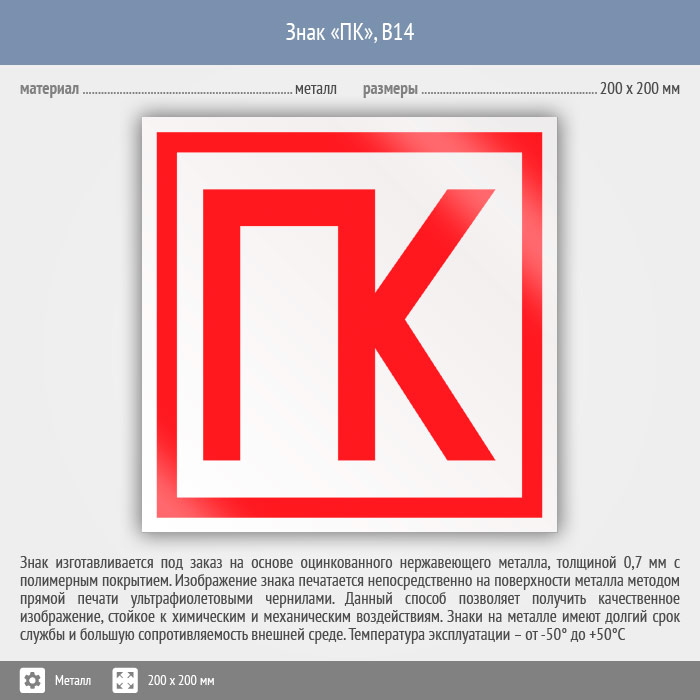 Знак «ПК», B14 (металл, 200х200 мм) в Твери купить