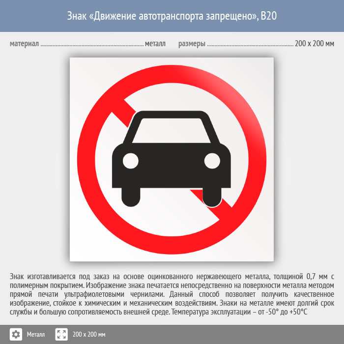 Знак «Движение автотранспорта запрещено», B20 (металл, 200х200 мм) в Твери купить