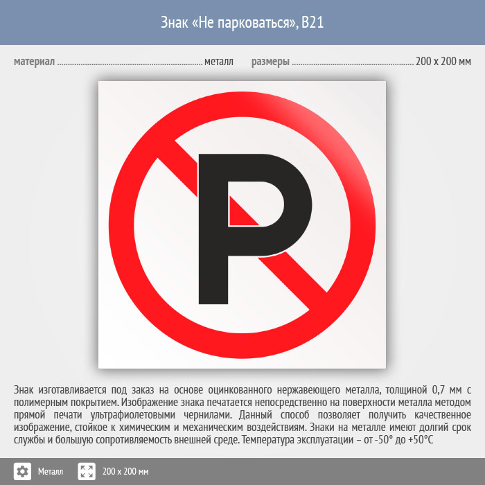 Знак «Не парковаться», B21 (металл, 200х200 мм) в Твери купить