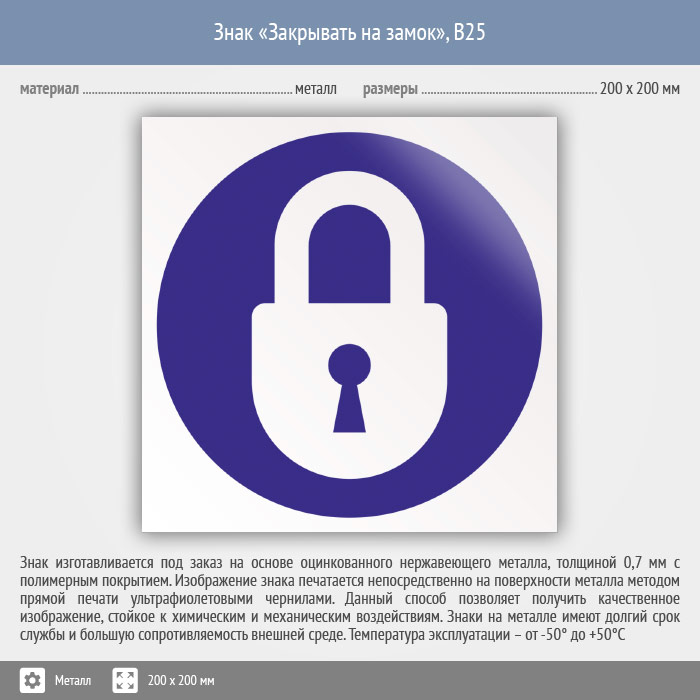 Знак «Закрывать на замок», B25 (металл, 200х200 мм) в Твери купить