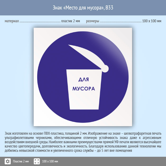 Знак «Место для мусора», B33 (пластик, 100х100 мм) в Твери купить
