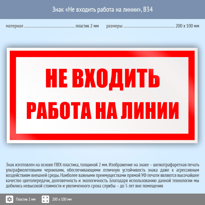Знак «Не входить работа на линии», B34 (пластик, 200х100 мм) в Твери купить