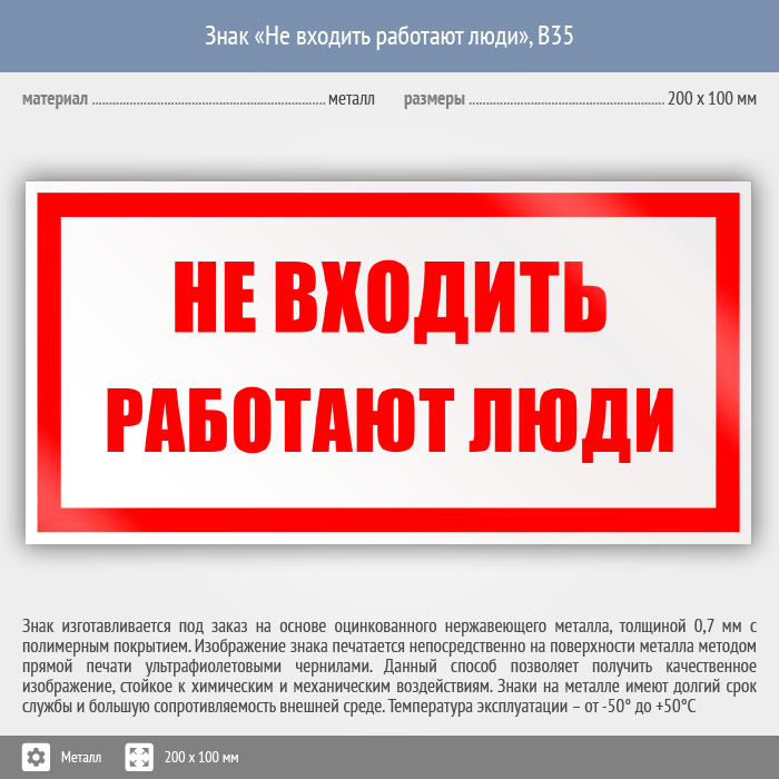 Знак «Не входить работают люди», B35 (металл, 200х100 мм) в Твери купить