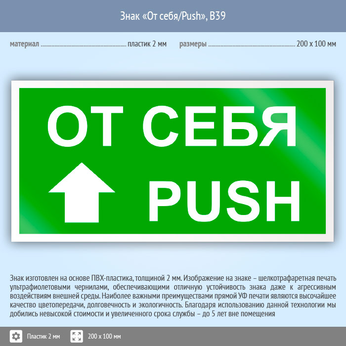 Знак «От себя/Push», B39 (пластик, 200х100 мм) в Твери купить