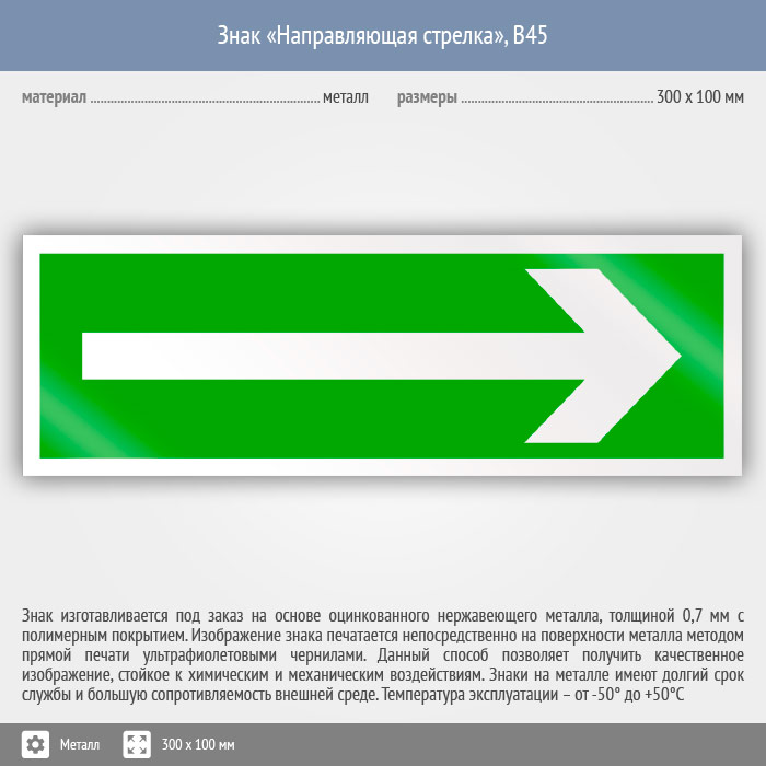 Знак «Направляющая стрелка», B45 (металл, 300х100 мм) в Твери купить