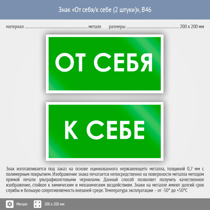 Знак «От себя/к себе», B46 (2 штуки, металл, 200х100 мм) в Твери купить