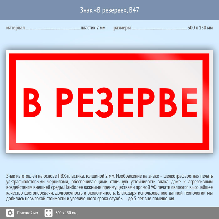 Знак «В резерве», B47 (пластик, 300х150 мм) в Твери купить