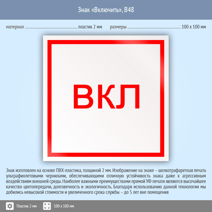 Знак «Включить», B48 (пластик, 100х100 мм) в Твери купить