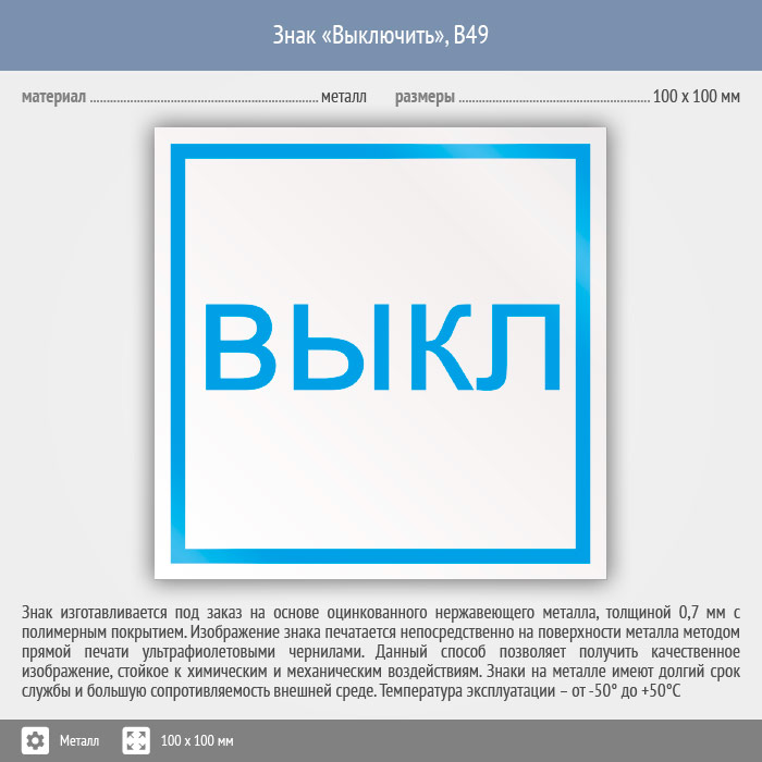 Знак «Выключить», B49 (металл, 100х100 мм) в Твери купить