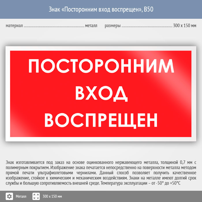 Знак «Посторонним вход воспрещен», B50 (металл, 300х150 мм) в Твери купить