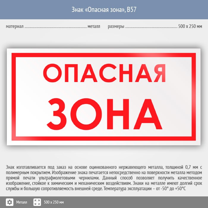 Знак «Опасная зона», B57 (металл, 500х250 мм) в Твери купить