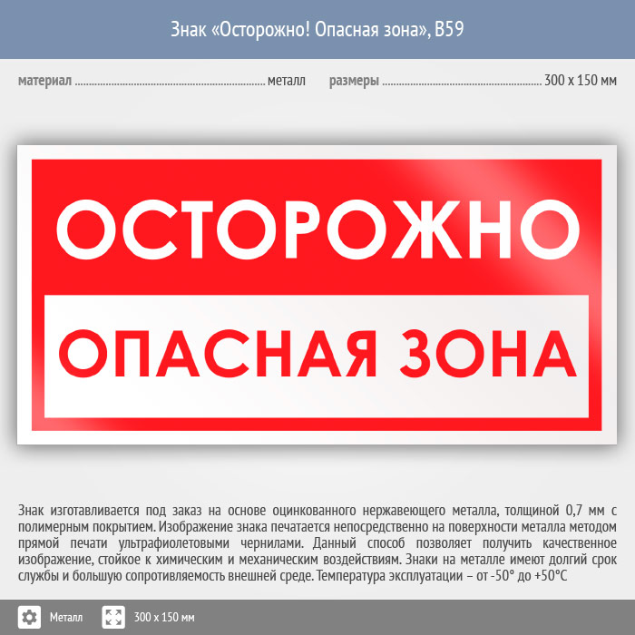 Знак «Осторожно! Опасная зона», B59 (металл, 300х150 мм) в Твери купить