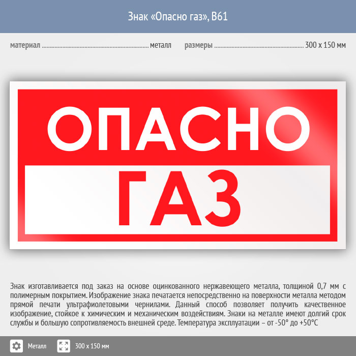 Знак «Опасно газ», B61 (металл, 300х150 мм) в Твери купить