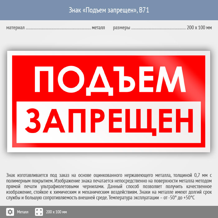 Знак «Подъем запрещен», B71 (металл, 200х100 мм) в Твери купить