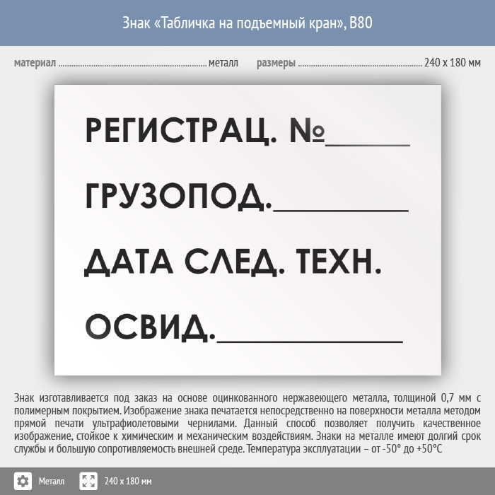 Знак «Табличка на подъемный кран», B80 (металл, 240х180 мм) в Твери купить
