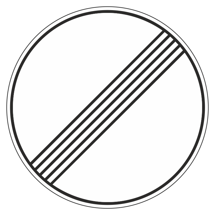 Дорожный знак 3.31 «Конец зоны всех ограничений» (металл 0,8 мм, III типоразмер: диаметр 900 мм, С/О пленка: тип Б высокоинтенсивная) в Твери купить