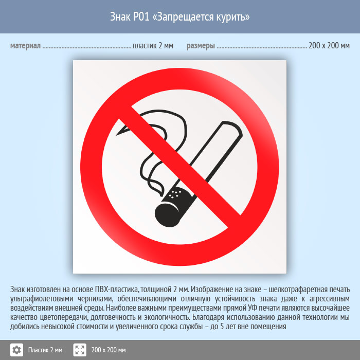 Знак P01 «Запрещается курить» (пластик, 200х200 мм) в Твери купить