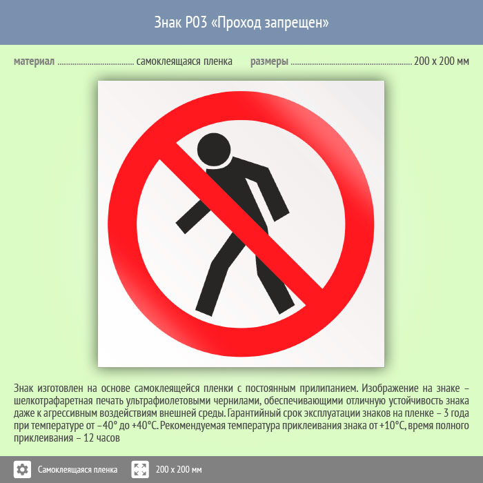 Знак P03 «Проход запрещен» (пленка, 200х200 мм) в Твери купить
