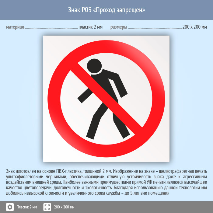 Знак P03 «Проход запрещен» (пластик, 200х200 мм) в Твери купить