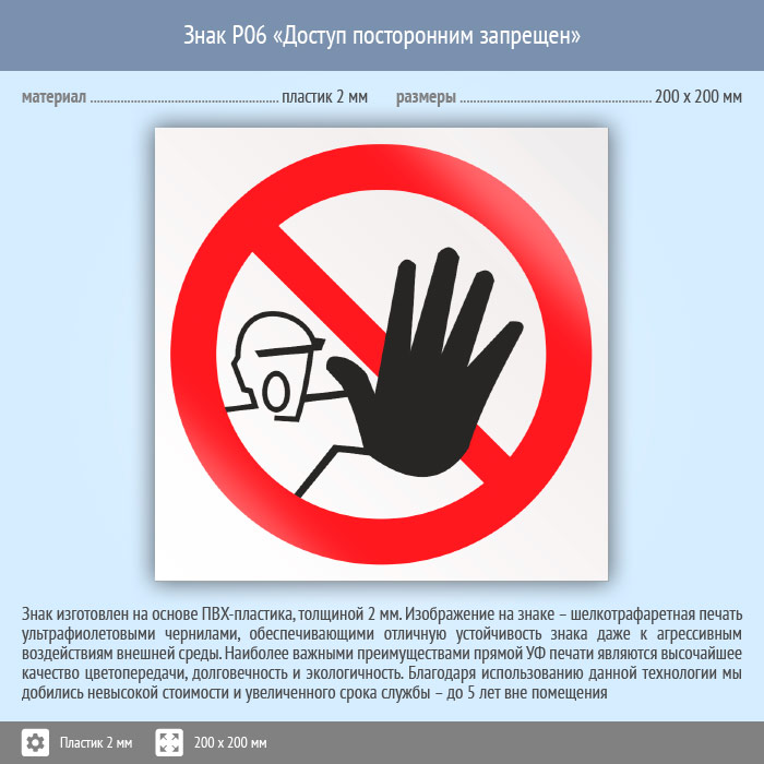 Знак P06 «Доступ посторонним запрещен» (пластик, 200х200 мм) в Твери купить