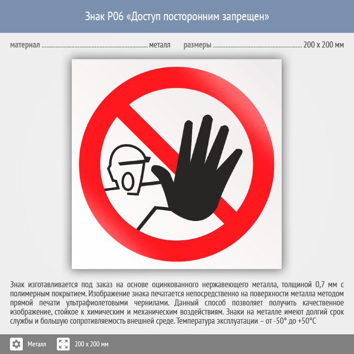 Знак P06 «Доступ посторонним запрещен» (металл, 200х200 мм) в Твери купить