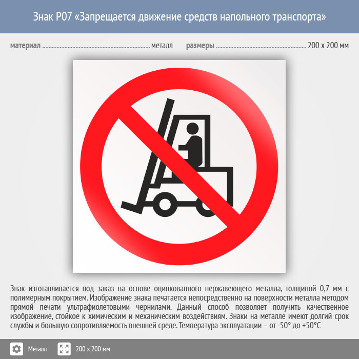 Знак P07 «Запрещается движение средств напольного транспорта» (металл, 200х200 мм) в Твери купить