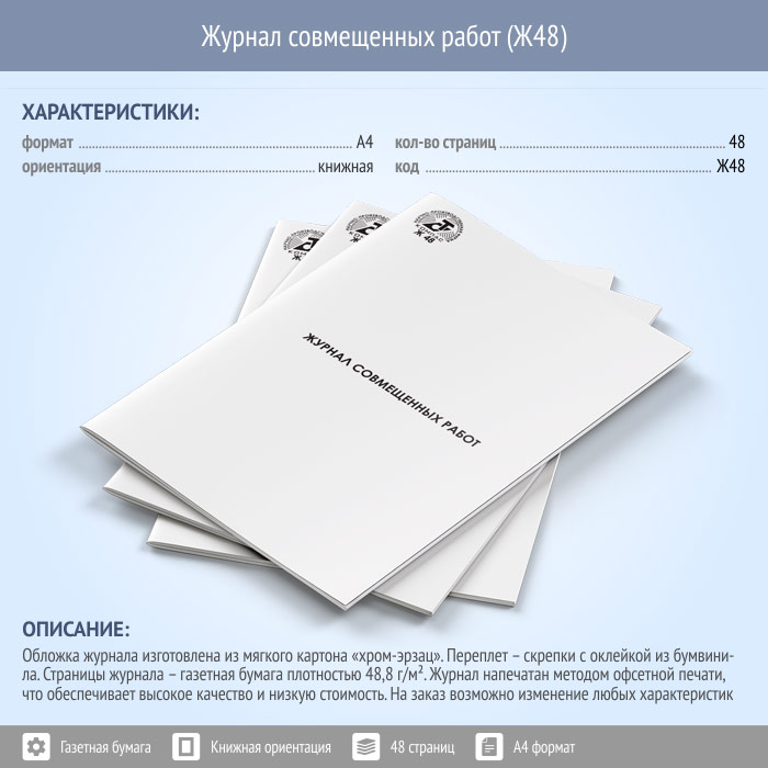 В журнал вносятся: период производства работ (дата и время), заявка на разрешение производства работ с указанием видов и места проведения работ, фамилии и подписи ответственного лица, разрешение или запрещение на совместимость работ на одном участке, а также фамилия, инициалы и подпись лица, допустившего или запретившего совмещение работ. После завершения работ и передачи объекта в постоянную эксплуатацию журнал совмещенных работ сдается на хранение генподрядной организации. Документ оформляется по установленным правилам: страницы прошнуровываются, нумеруются, заверяются печатью организации и подписью ответственного лица.