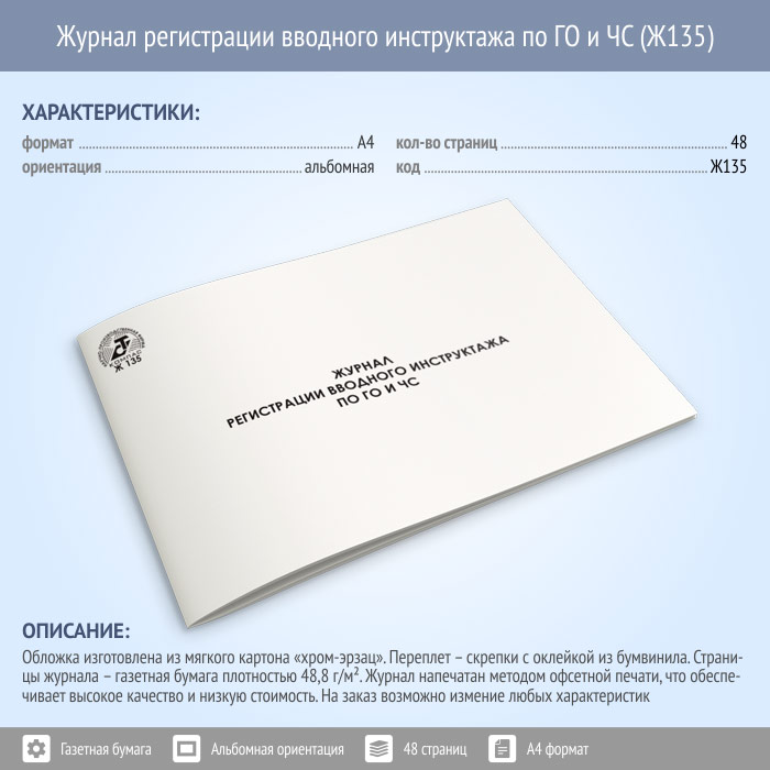Журнал регистрации вводного инструктажа по ГО и ЧС (48 стр., Ж135) в Твери купить