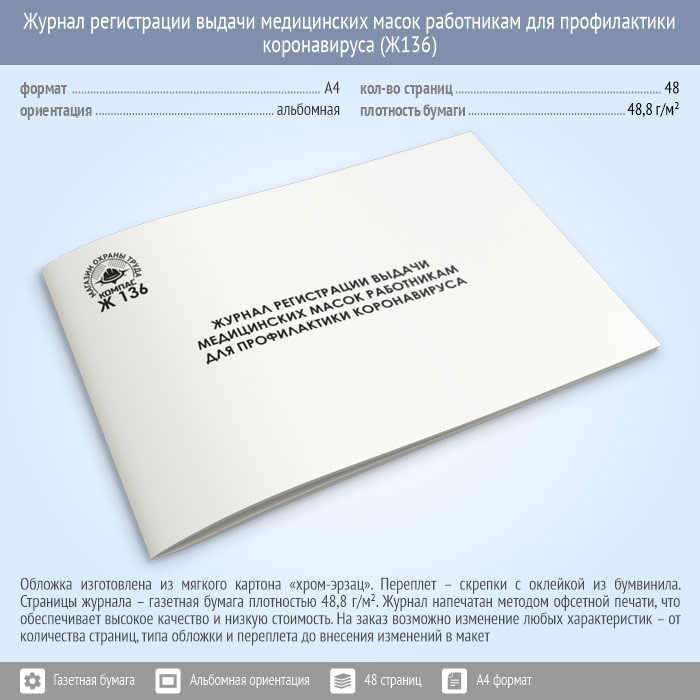Журнал регистрации выдачи медицинских масок работникам для профилактики коронавируса (48 стр., Ж136) в Твери купить