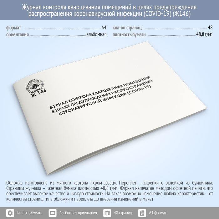 Журнал контроля кварцевания помещений в целях предупреждения распространения коронавирусной инфекции (COVID-19) (48 стр., Ж146) в Твери купить