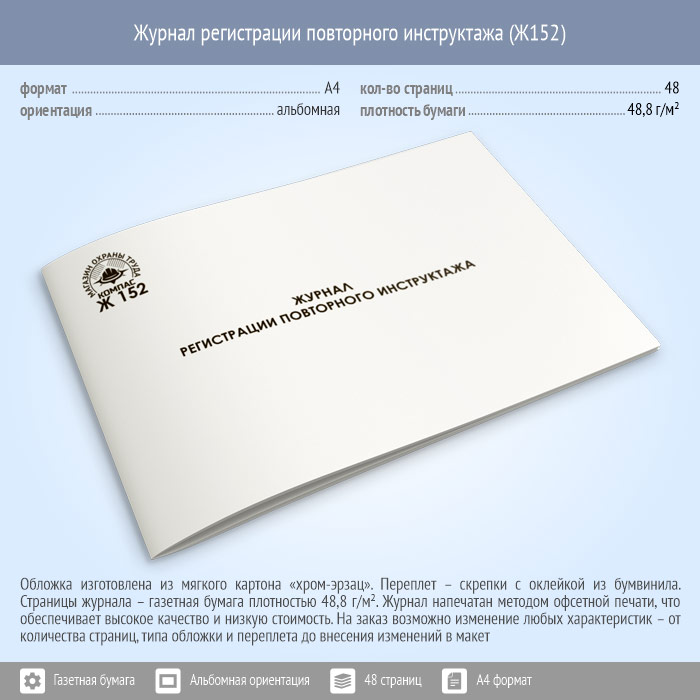Журнал регистрации повторного инструктажа (48 стр., Ж152) в Твери купить