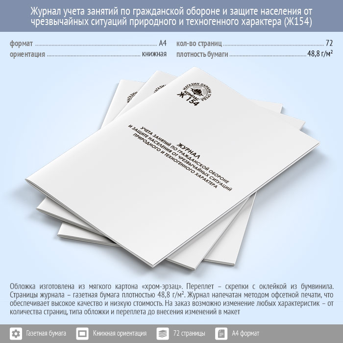 Журнал учета занятий по гражданской обороне и защите населения от чрезвычайных ситуаций природного и техногенного характера (72 стр., Ж154) в Твери купить