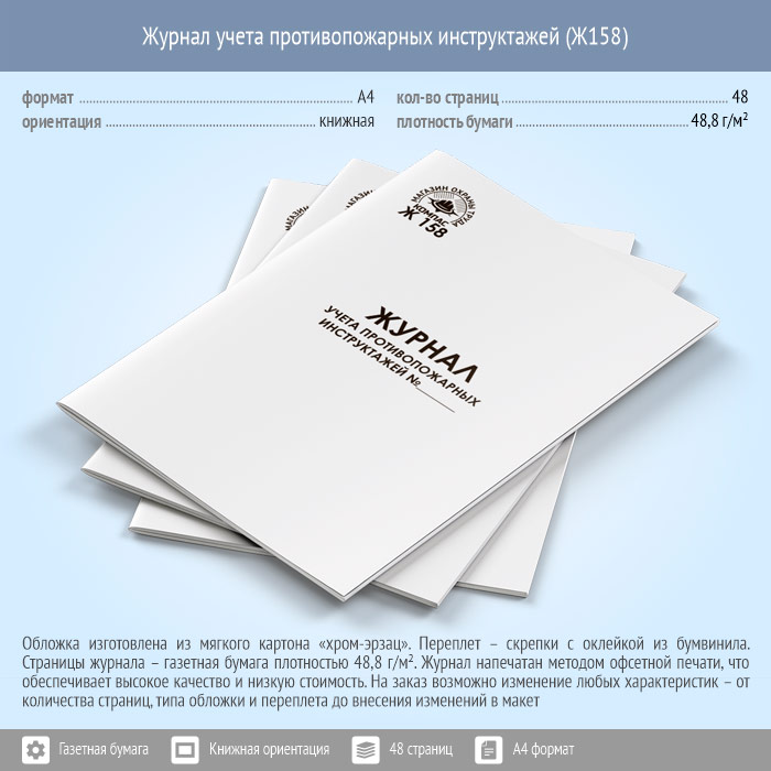 Журнал учета противопожарных инструктажей (48 стр., Ж158) в Твери купить