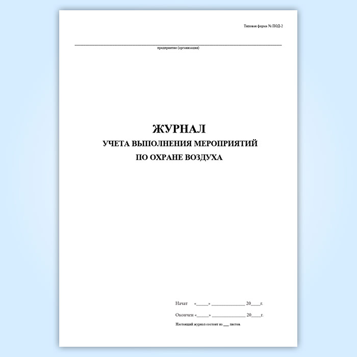 Журнал учета выполнения мероприятий по охране воздуха (форма ПОД-2) в Твери купить