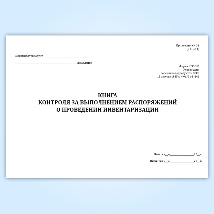 Книга контроля за выполнением распоряжений о проведении инвентаризации (форма № 30-НП) в Твери купить