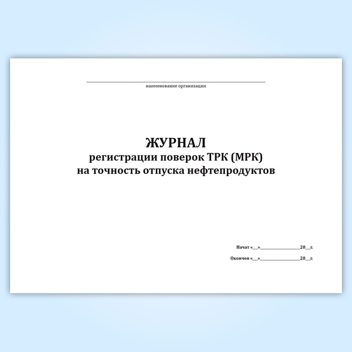 Журнал регистрации поверок ТРК (МРК) на точность отпуска нефтепродуктов в Твери купить