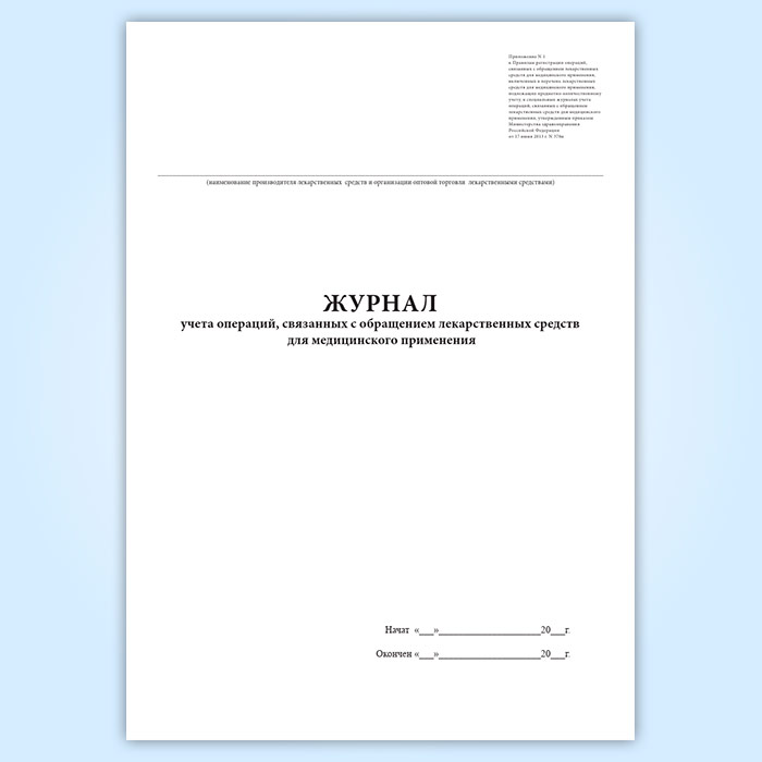 Журнал учета операций, связанных с обращением лекарственных средств для медицинского применения (для производителя лекарственных средств и организации оптовой торговли лекарственными средствами) в Твери купить