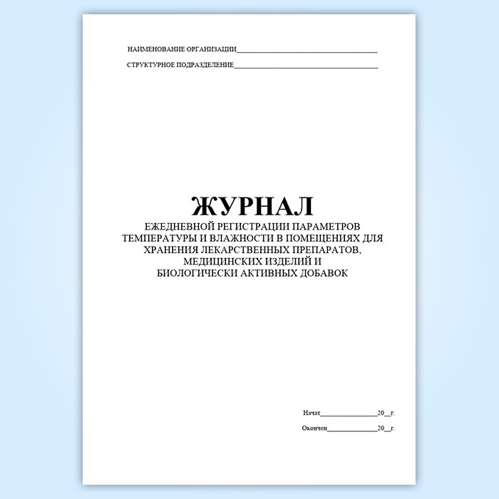 Журнал ежедневной регистрации параметров температуры и влажности в помещениях для хранения лекарственных препаратов, медицинских изделий и биологически активных добавок в Твери купить