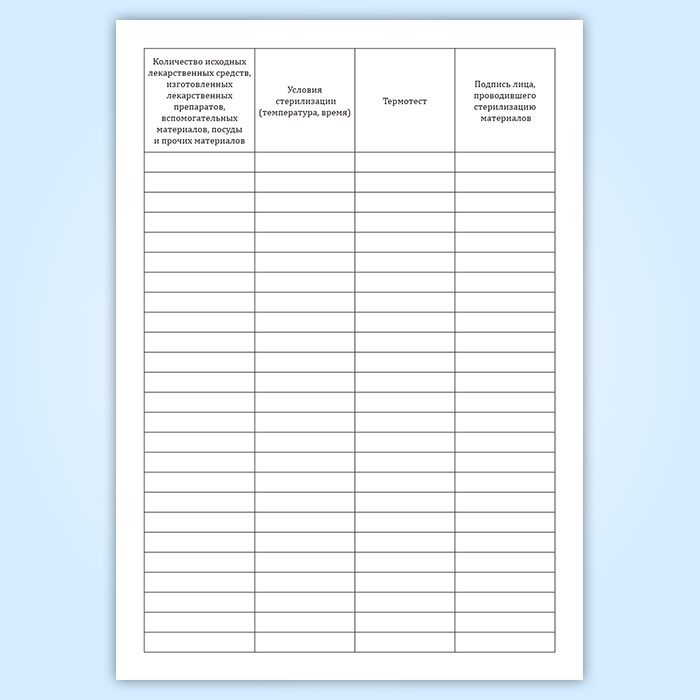 Журнал регистрации режима стерилизации исходных лекарственных средств, изготовленных лекарственных препаратов, вспомогательных материалов, посуды и прочих материалов в Твери купить