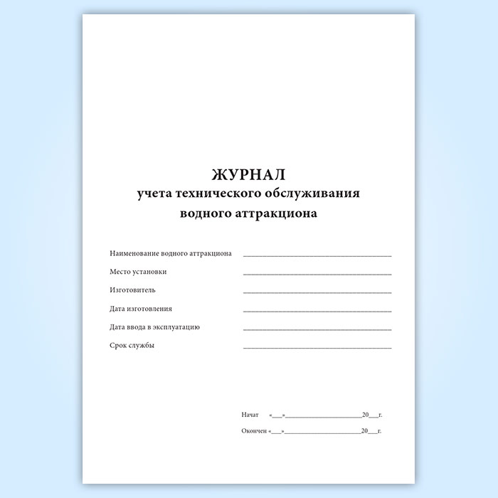 Журнал учета технического обслуживания водного аттракциона в Твери купить