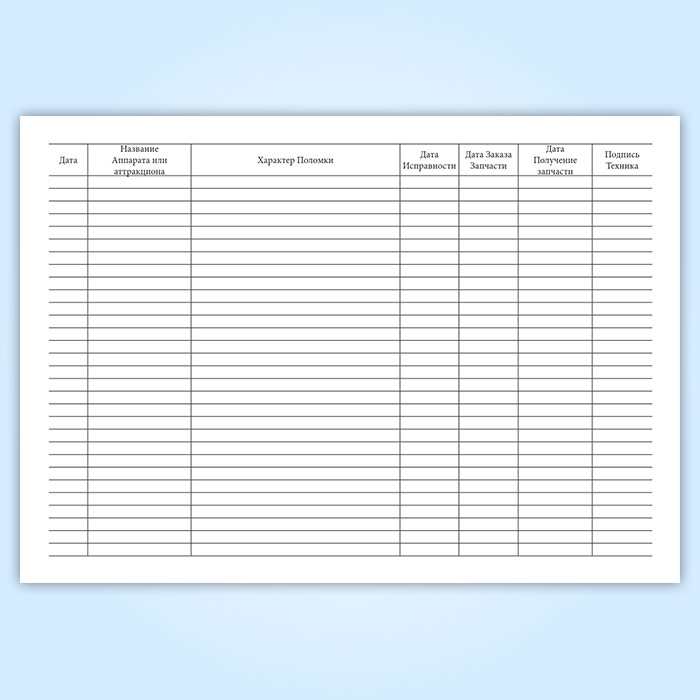 Журнал учета поломки аттракционов и игровых автоматов в Твери купить