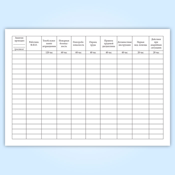Журнал по обучению персонала передвижного городка аттракционов в Твери купить