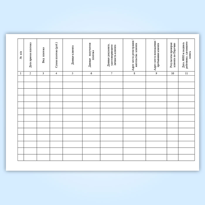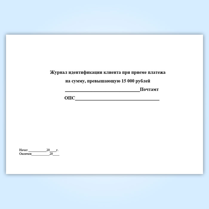 Журнал идентификации клиента при приеме платежа на сумму, превышающую 15 000 рублей в Твери купить