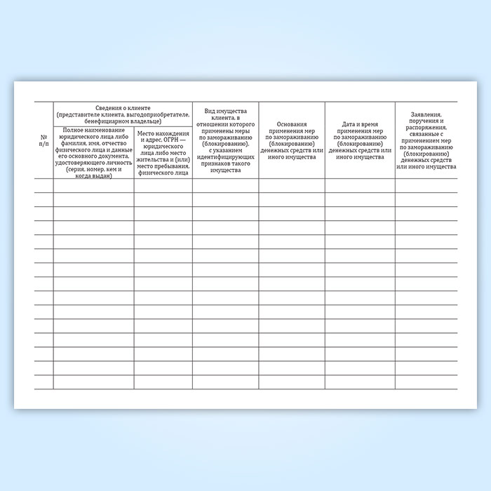 Журнал учета принятых мер по замораживанию (блокированию) денежных средств или иного имущества клиентов в Твери купить
