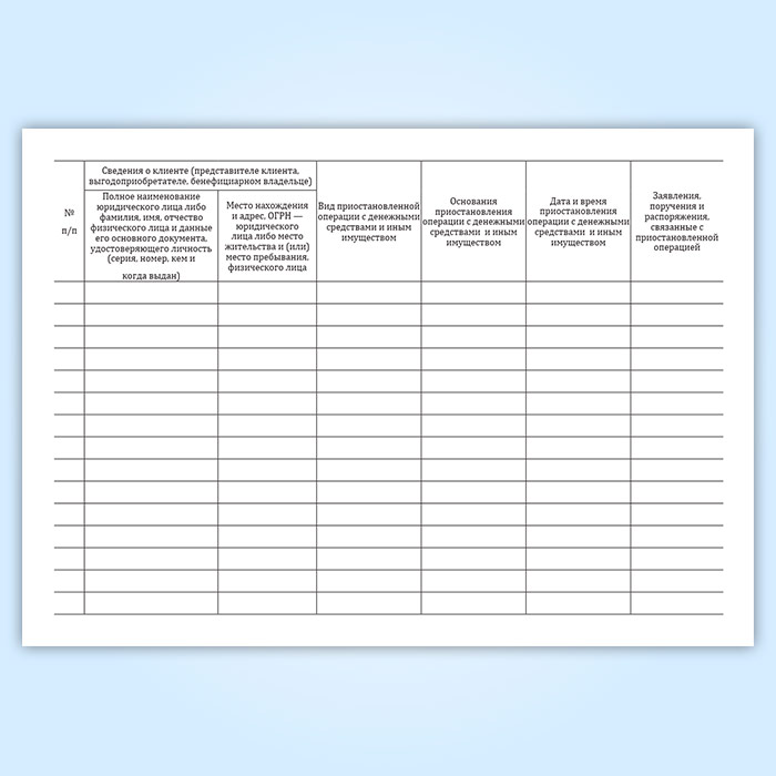 Журнал учета приостановленных операций с денежными средствами и иным имуществом клиента в Твери купить