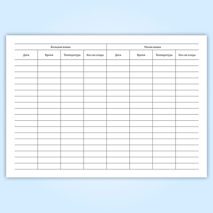 Журнал учета хлорирования и температурного режима плавательного бассейна в Твери купить