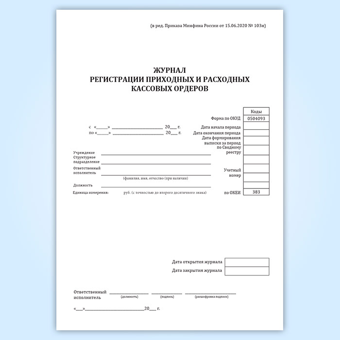 Журнал регистрации приходных и расходных кассовых ордеров (форма по ОКУД 0504093) в Твери купить