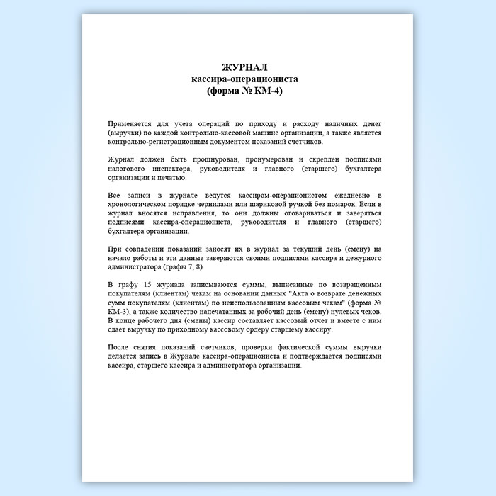 Журнал кассира-операциониста, вертикальный (форма № КМ-4) в Твери купить