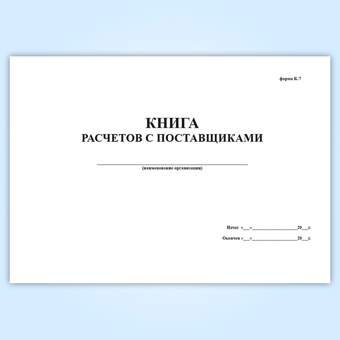 Книга расчетов с поставщиками (форма К-7) в Твери купить