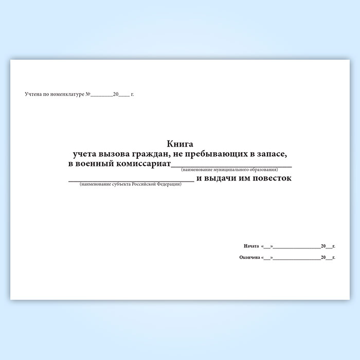 Книга учета вызова граждан, не пребывающих в запасе, в военный комиссариат и выдачи им повесток в Твери купить